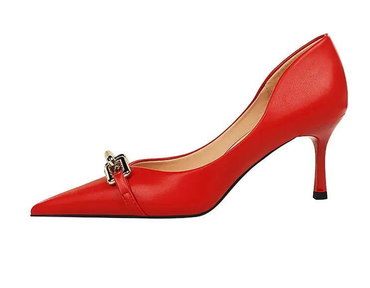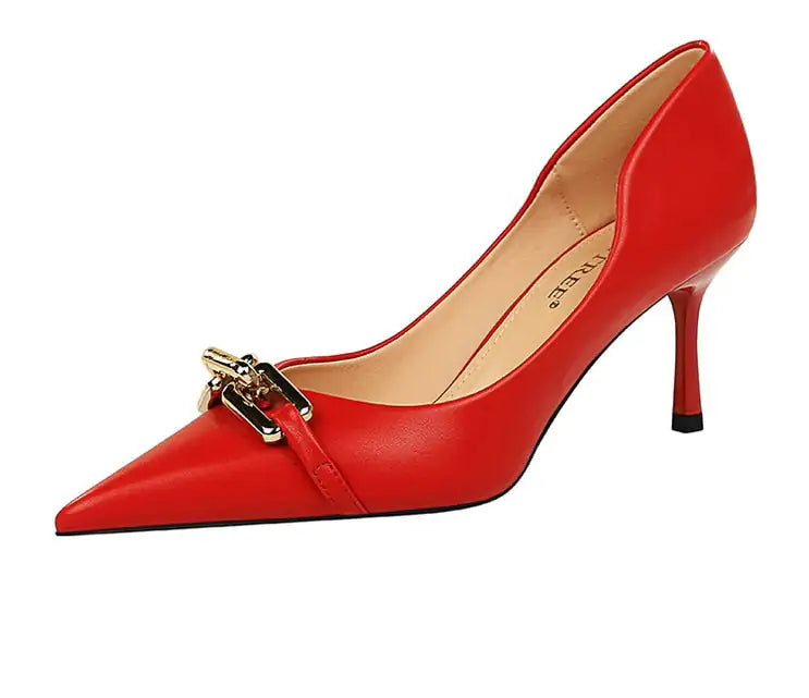 Unleash your inner fashionista with our buckled chain high heels, crafted to blend trend-setting design with wearable comfort. Perfect for expressing your unique sense of style effortlessly.
