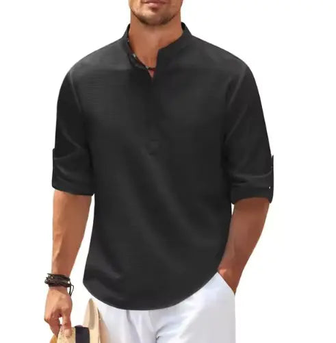 This men’s long sleeve shirt is made from lightweight and breathable polyester. It features a solid color, stand collar, and long sleeves for a simple yet stylish look. The classic slim fit is perfect for casual wear and versatile enough to pair with suit pants, casual pants, or jeans. Ideal for everyday activities, parties, dates, and travel.