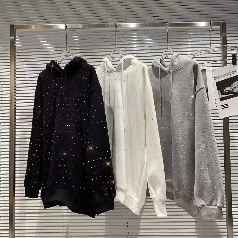 Rhinestone Shiny Loose Pullover Hoodie