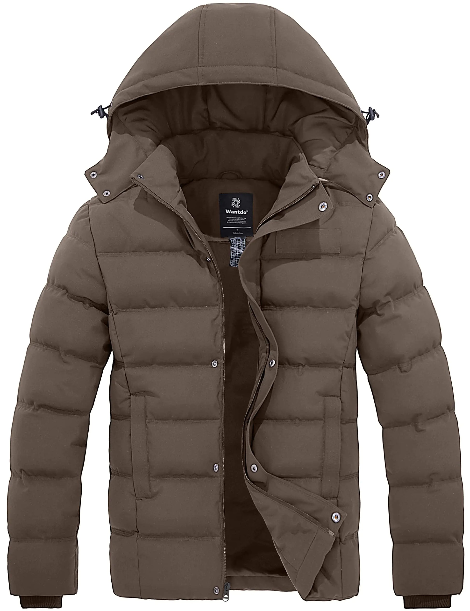 wantdo Mens Quilted Winter Jacket Thicken Bubble Coat Puffer Jacket (Brown Large)