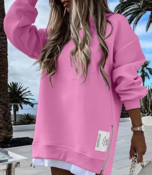 Step out in style with the Zipper Decorations Round Neck Sweater Dress—a versatile piece that seamlessly combines comfort and contemporary fashion!