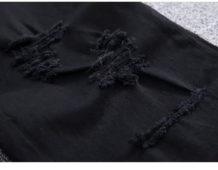 Zippered Holes Elastic Trend Denim Pants